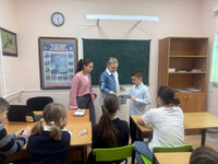Ученица 9 класса Гоцева Таисия провела викторину по физике в 8 классе. Было весело и интересно.